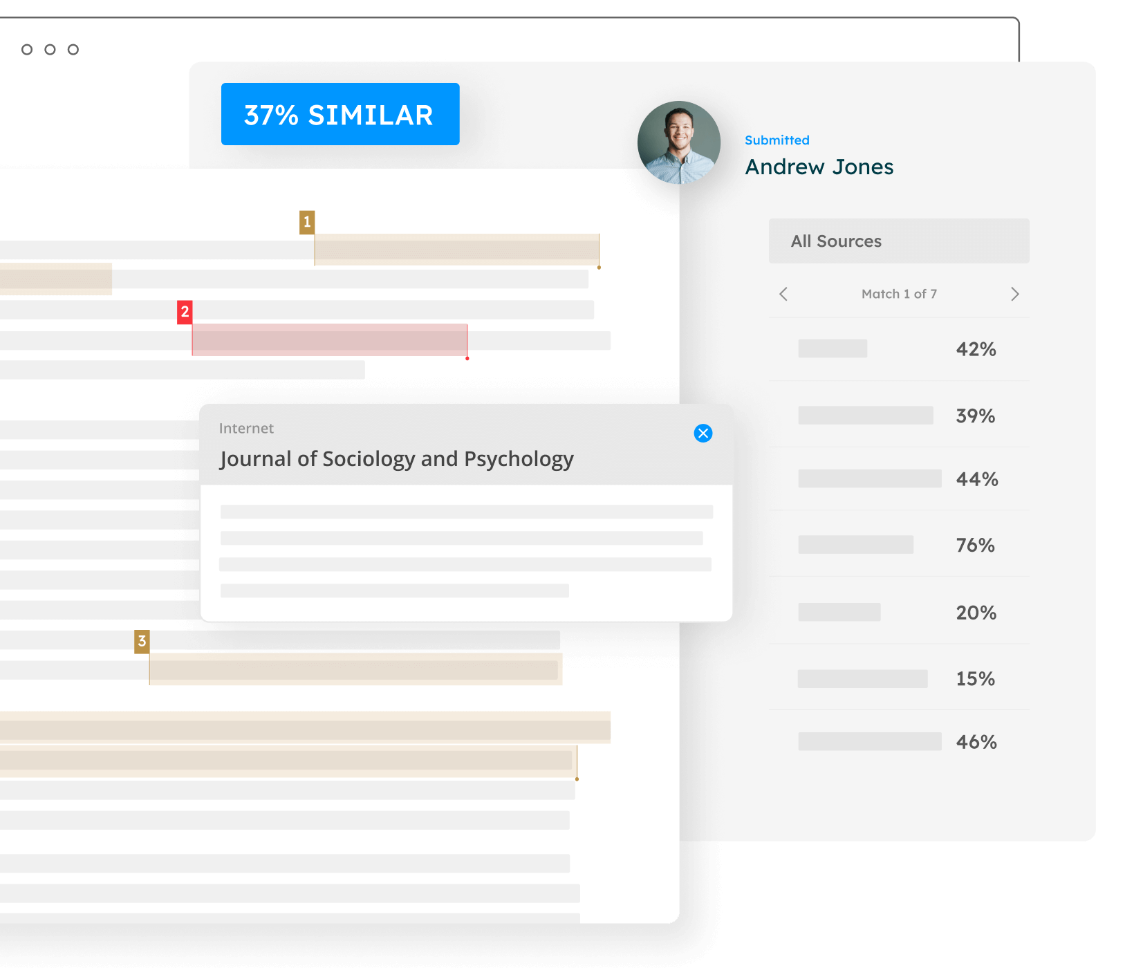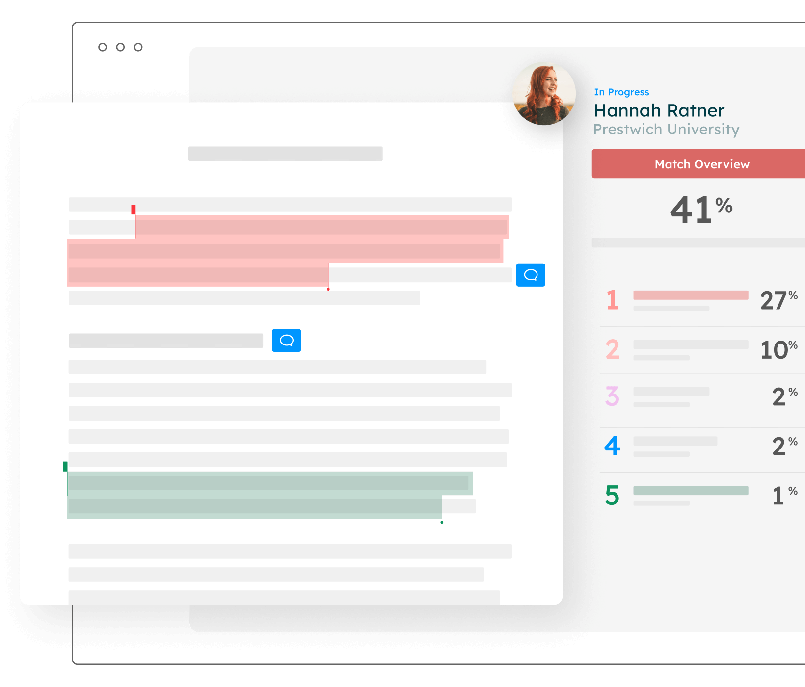 كن قادرًا على كشف مختلف أشكال السرقة الفكرية، المعتادة والناشئة حديثًا في الوسط الأكاديمي، بدءًا من اكتشاف التشابهات بين النصوص والتبديل بين المصطلحات ووصولًا إلى الغش بالاتفاق والكتابة بتقنيات الذكاء الاصطناعي وإعادة الصياغة بواسطة الذكاء الاصطناعي.
