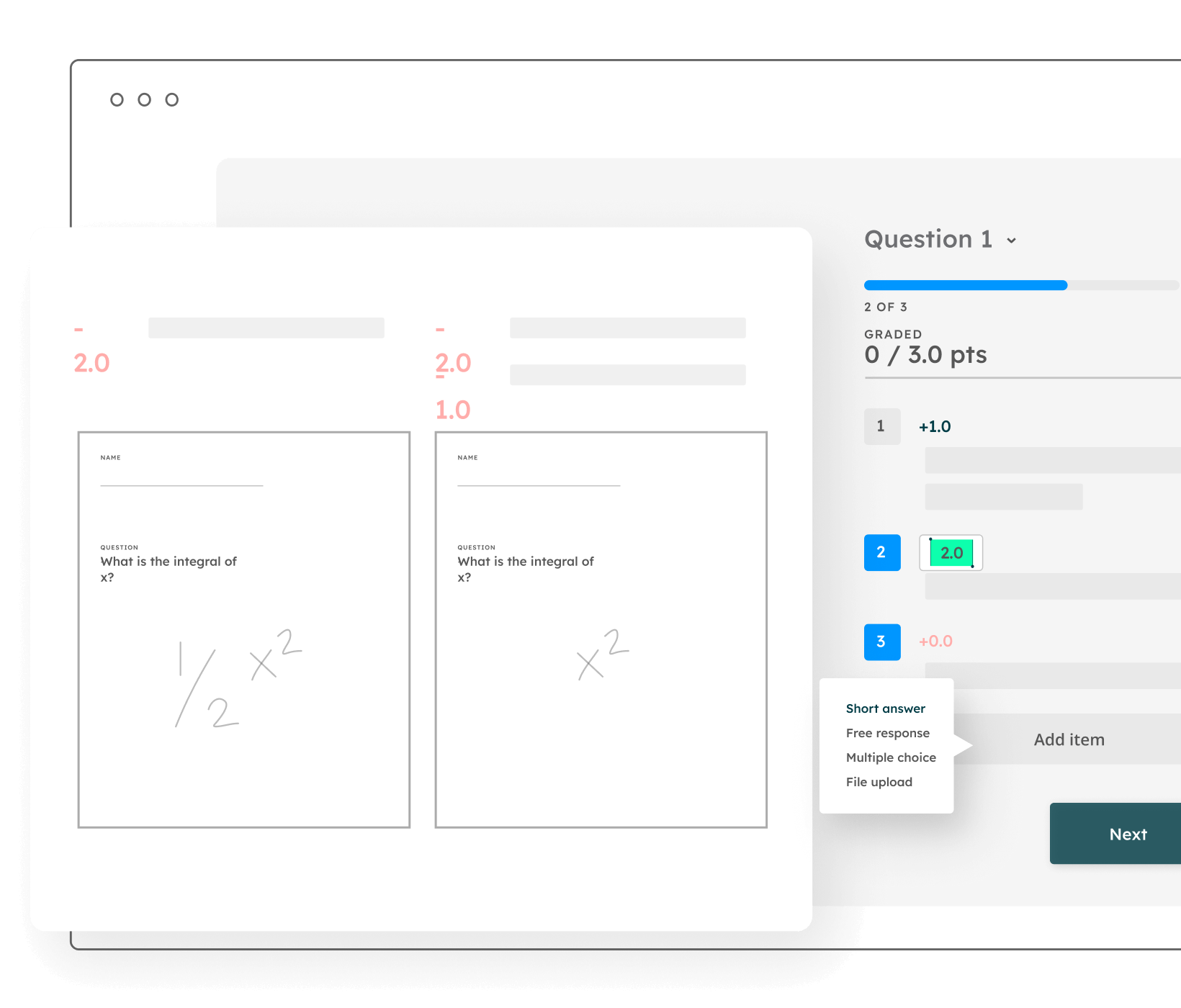 تتيح أداة Gradescope للمعلمين إمكانية إنشاء وإدارة وتصحيح الواجبات الدراسية المختلفة، مثل: الواجبات الورقية واختبارات "البابل شيت" والمهام الرقمية وأكواد البرمجة، سواء كان ذلك داخل الفصول الدراسية أو عبر الإنترنت أو كليهما.