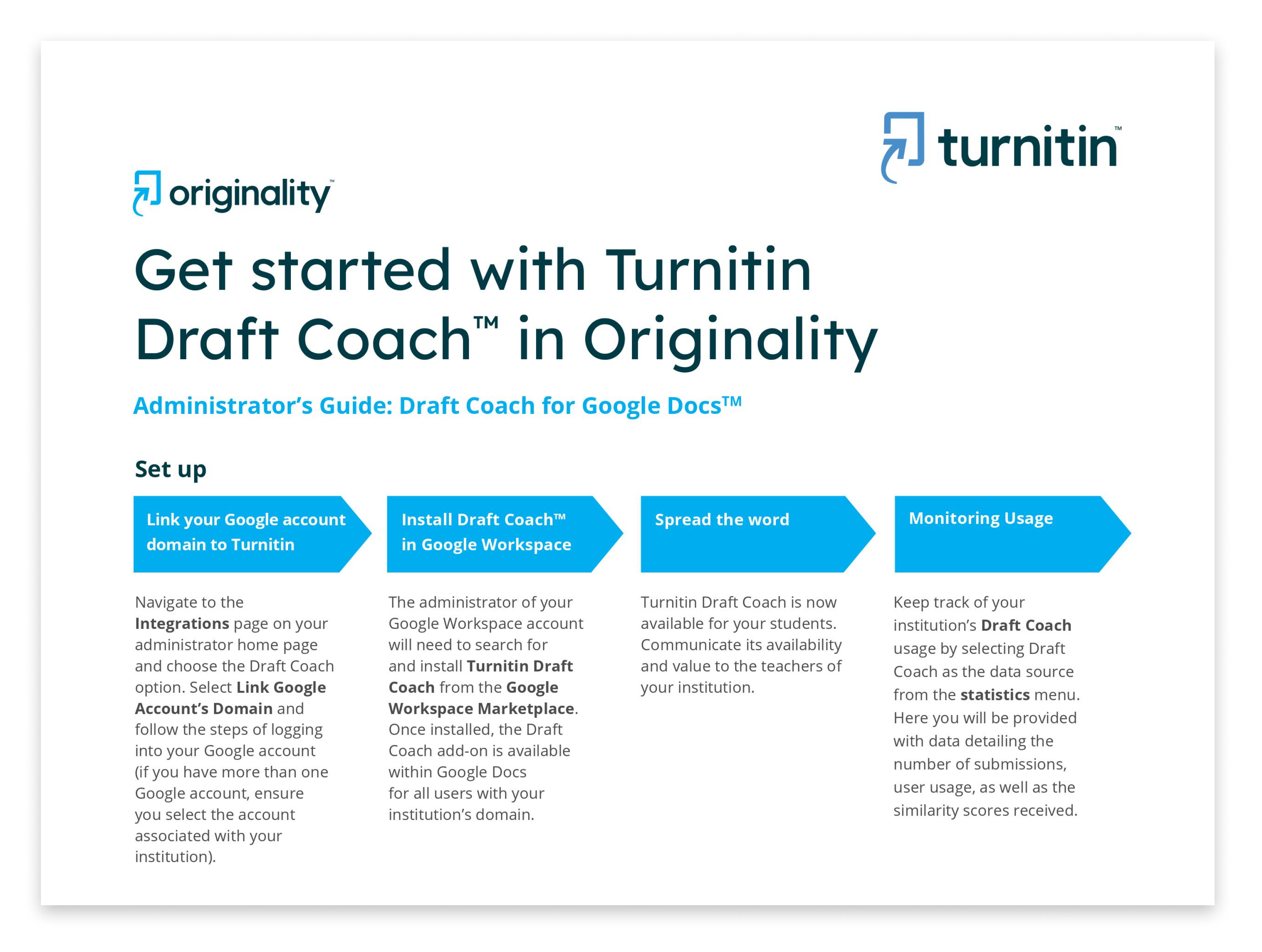 نظرة عامة قصيرة عن خطوات تهيئة Draft Coach لمديرين الحساب في Originality